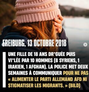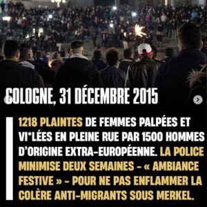 Les violences sexuelles envers les femmes “infidèles” ne sont plus cantonnées aux seuls pays du tiers monde tels le Pakistan et les territoires sous contrôle de l’Etat islamique. En Occident aussi, les femmes deviennent des cibles. En Allemagne, certains migrants musulmans clament haut et fort que toutes « les femmes allemandes sont là pour le sexe ». Lors des célébrations du Nouvel An de 2016 à Cologne, des migrants ont agressé un millier de femmes. En Grande-Bretagne, où une importante minorité musulmane existe depuis longtemps, des milliers de filles britanniques dans diverses régions ont été maltraitées et violées par des ” groomings gangs ” composés en grande partie de musulmans agissant selon leur droit islamique. Une victime de viol a déclaré :